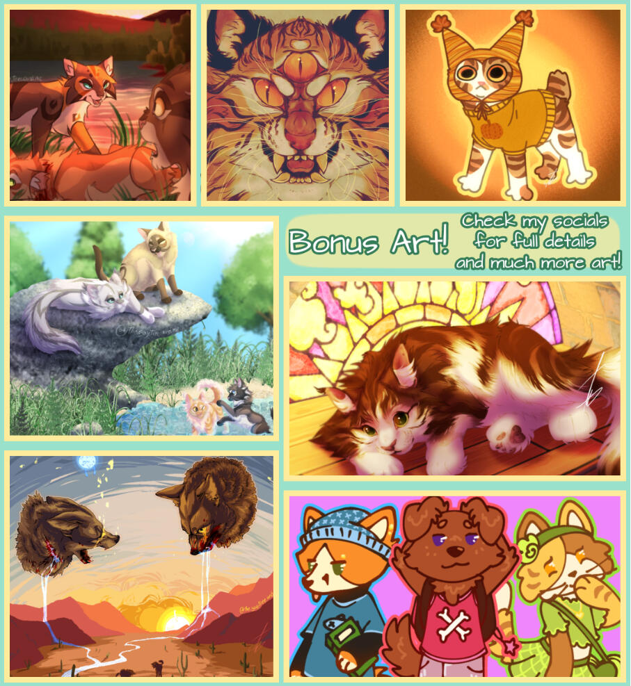 - Share/Repost their artwork any place they see fit with proper credit to the artists.
